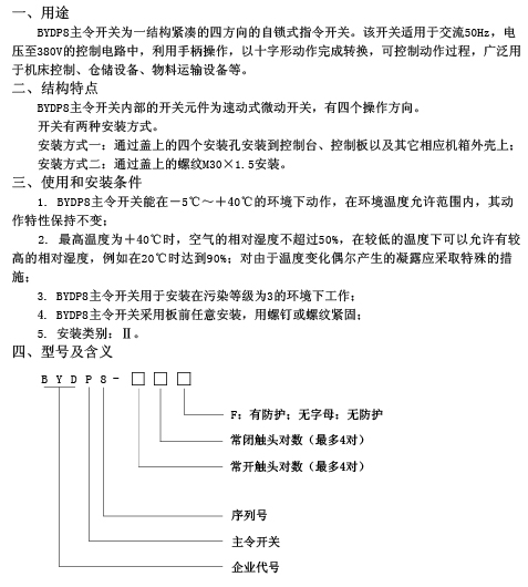 商品名称: BYDP8主令开关   商品编号: zhl_2   上架时间: 2011-07-28   浏览次数: 334   市场价: 0.00   零售价: 0.00   已销售数量:0件