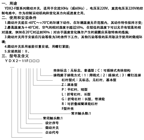 商品名称: YDX2-F型系列微动开关   商品编号: wd_6   上架时间: 2011-07-27   浏览次数: 287   市场价: 0.00   零售价: 0.00   已销售数量:0件
